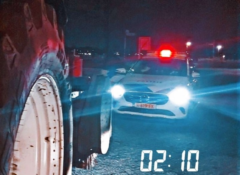 Na een lange dag rooien was de veegtrekker afgelopen week 's nachts nog onderweg, toen hij nog werd aangehouden door de politie.